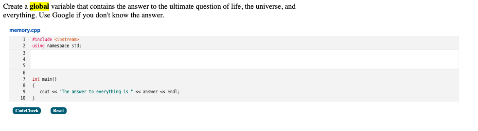 Solved Create A Global Variable That Contains The Answer To Chegg Com